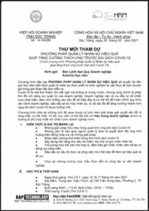 THƯ MỜI THAM DỰ PHƯƠNG PHÁP QUẢN LÝ NHÂN SỰ HIỆU QUẢ GIÚP TĂNG CƯỜNG THÍCH ỨNG TRƯỚC ĐẠI DỊCH COVID-19